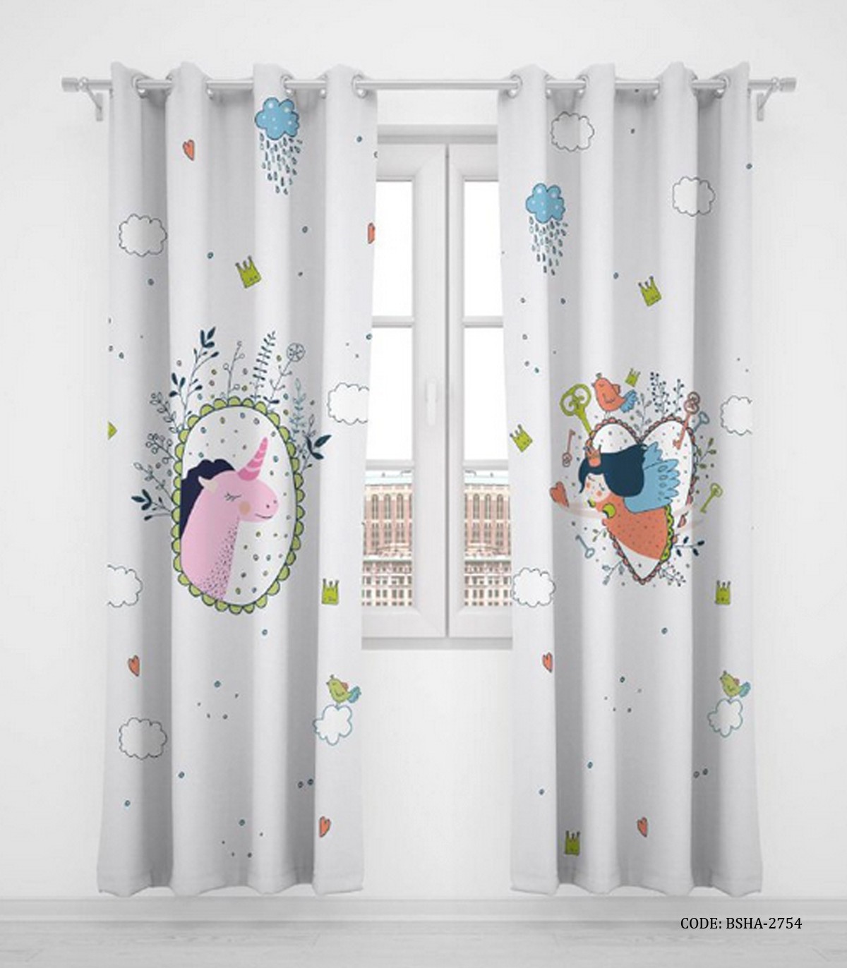 پرده پانچی دو تکه اتاق کودک دخترانه اسب تک شاخ مدل Unicorn