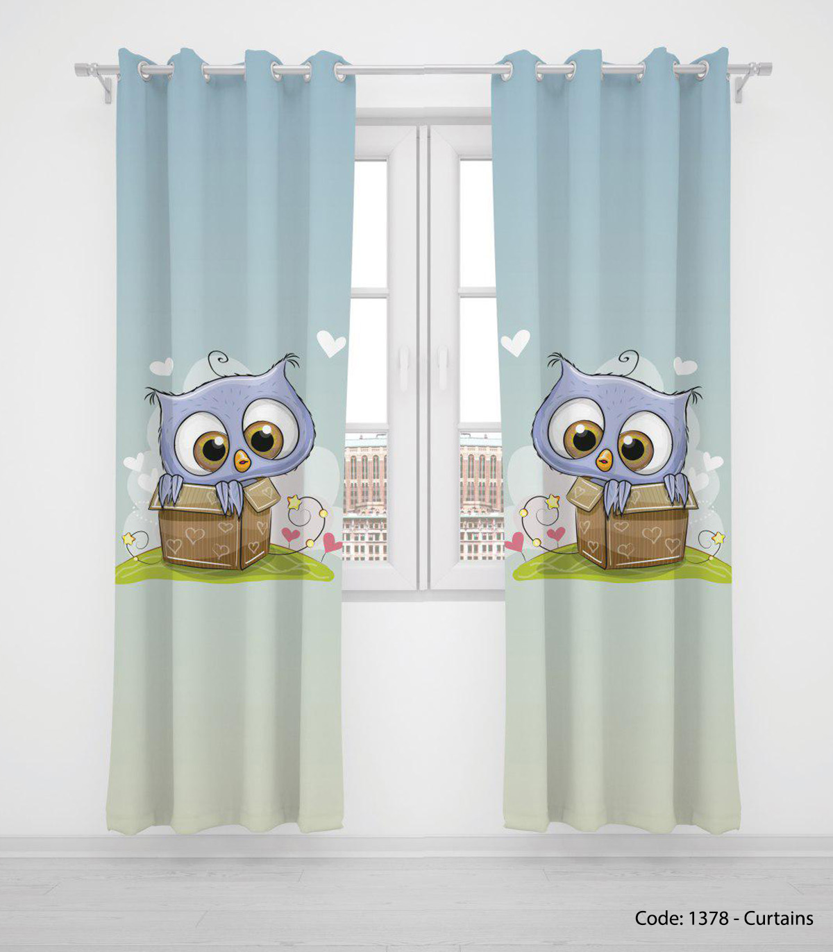 پرده پانچی دو تکه اتاق کودک مناسب سیسمونی مدل BLUE OWL