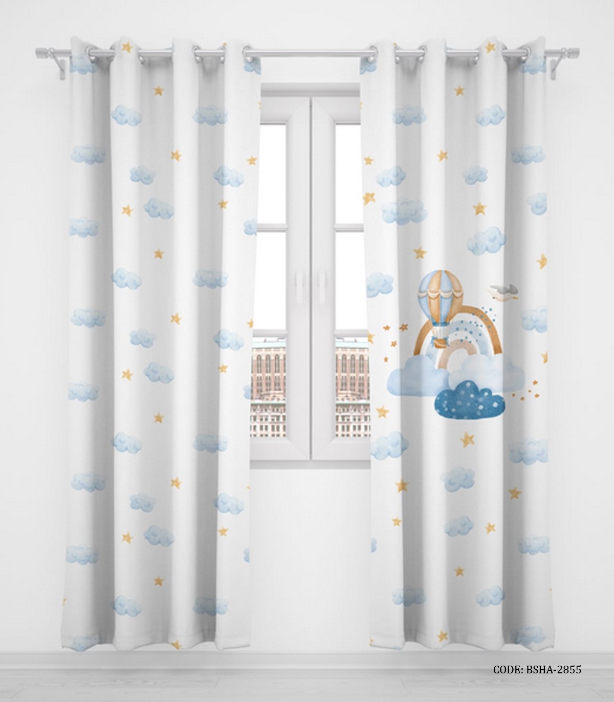 پرده پانچی دو تکه اتاق کودک پسرانه طرح بالون آرزوها مدل Balloon