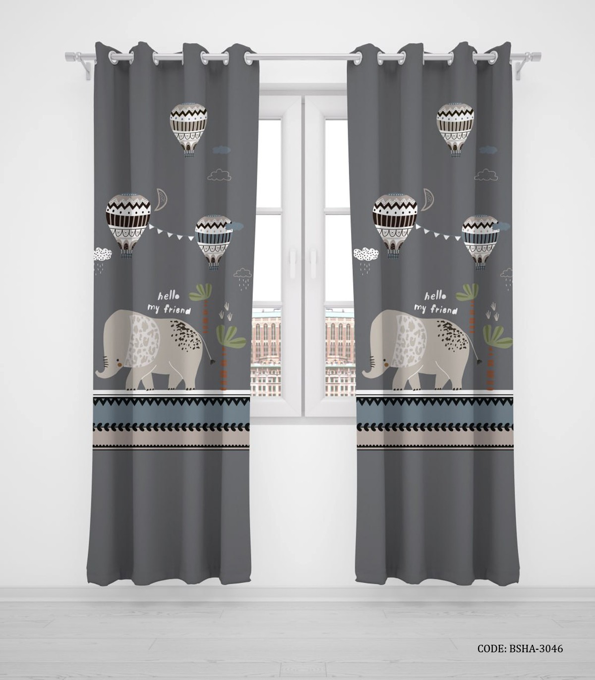 پرده پانچی دو تکه اتاق کودک پسرانه طرح فیل مدل hello my friend