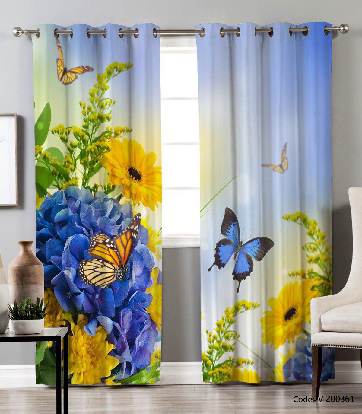 پرده پانچی دو تکه مدل باغستان