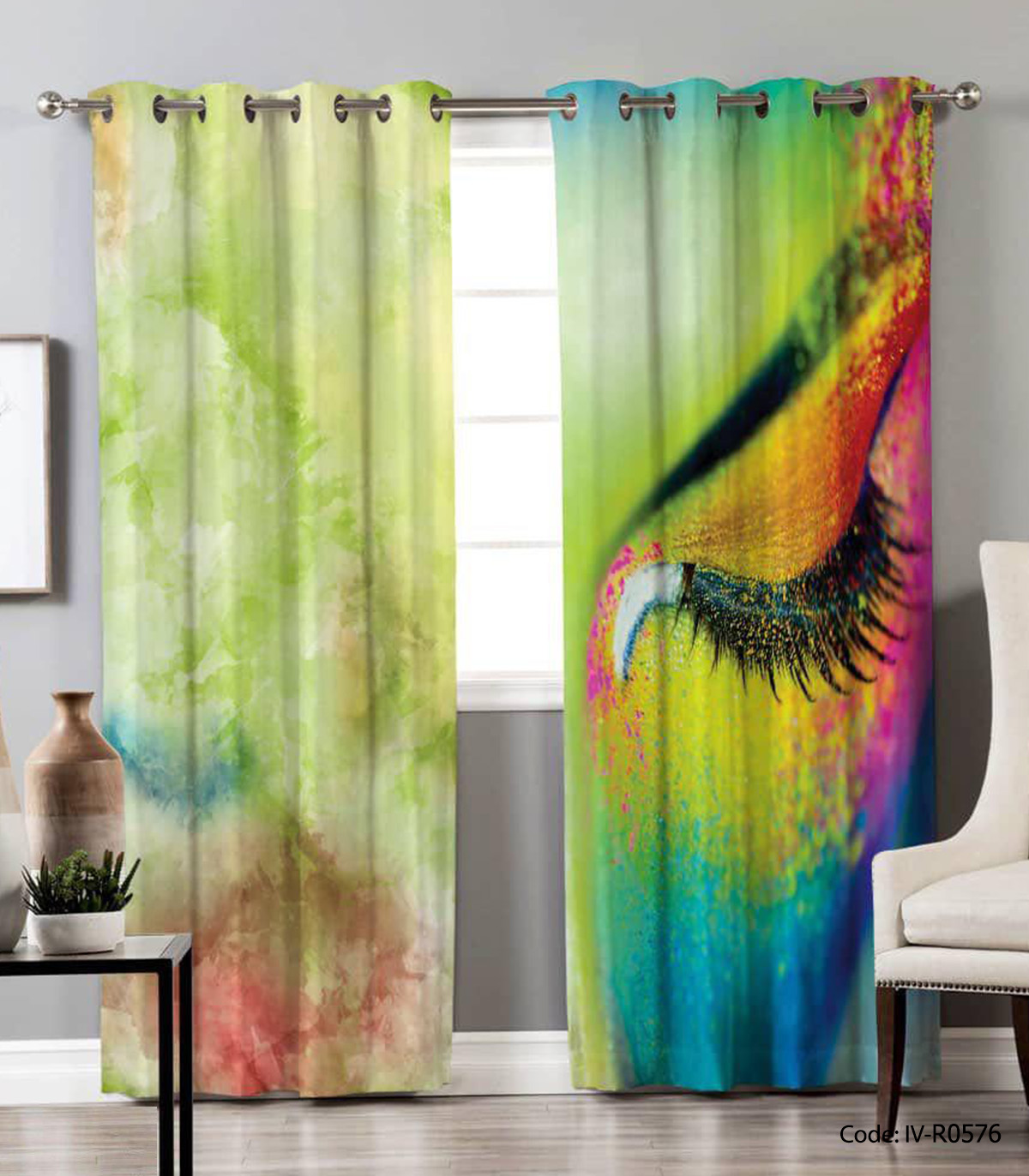 پرده پانچی دو تکه مدل چشم