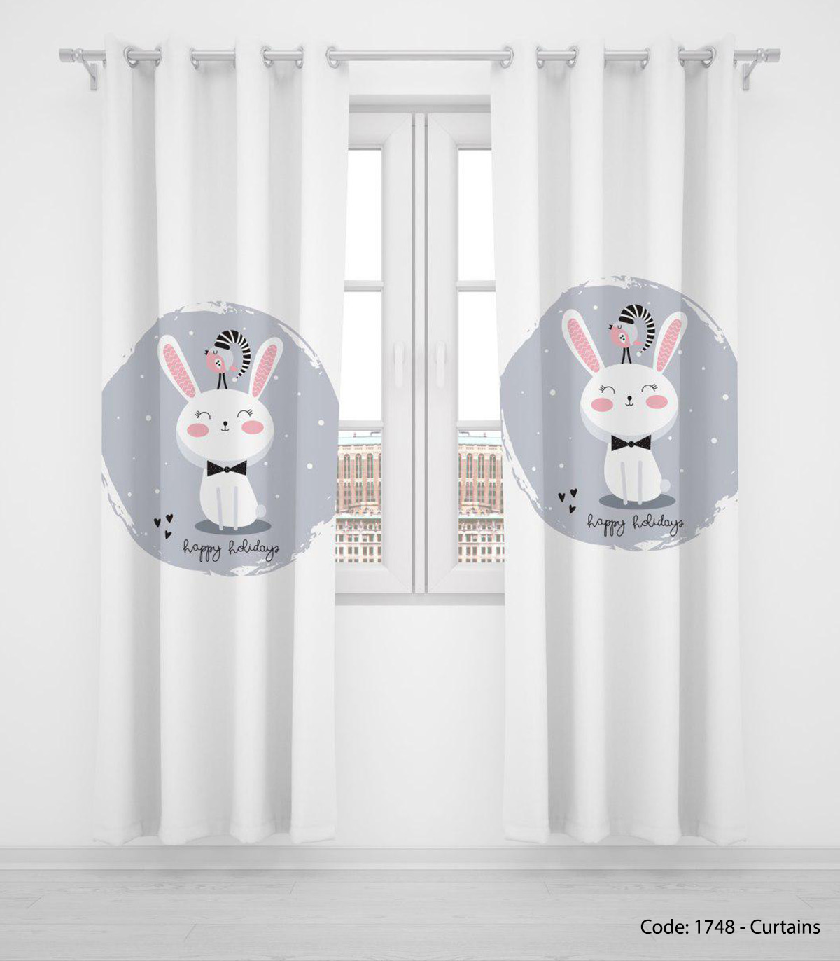 پرده پانچی دو تکه اتاق کودک دخترانه مدل HAPPY HOLIDAY