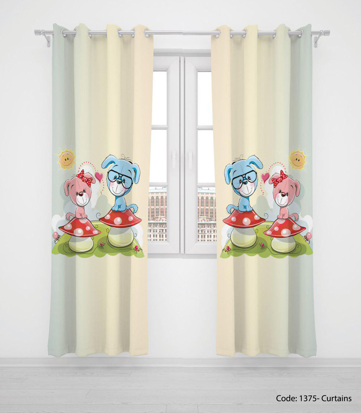 پرده پانچی دو تکه مناسب سیمونی مدل DOGS