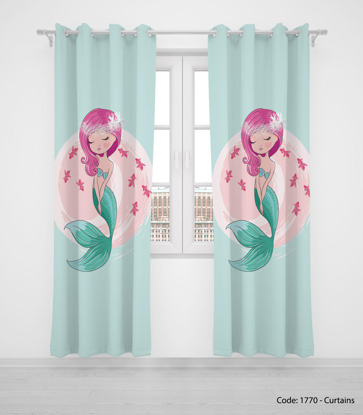 پرده پانچی دو تکه کودکانه مدل پری دریایی