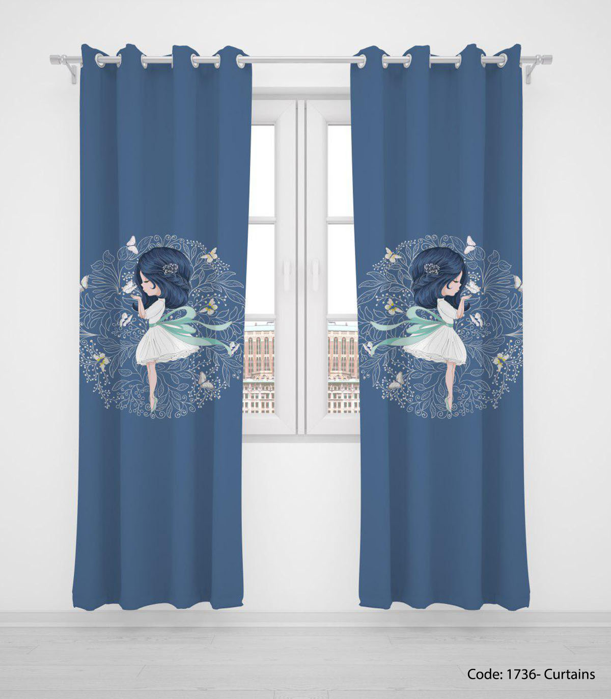 پرده پانچی سرمه ای دخترانه مدل BLUE HAIR