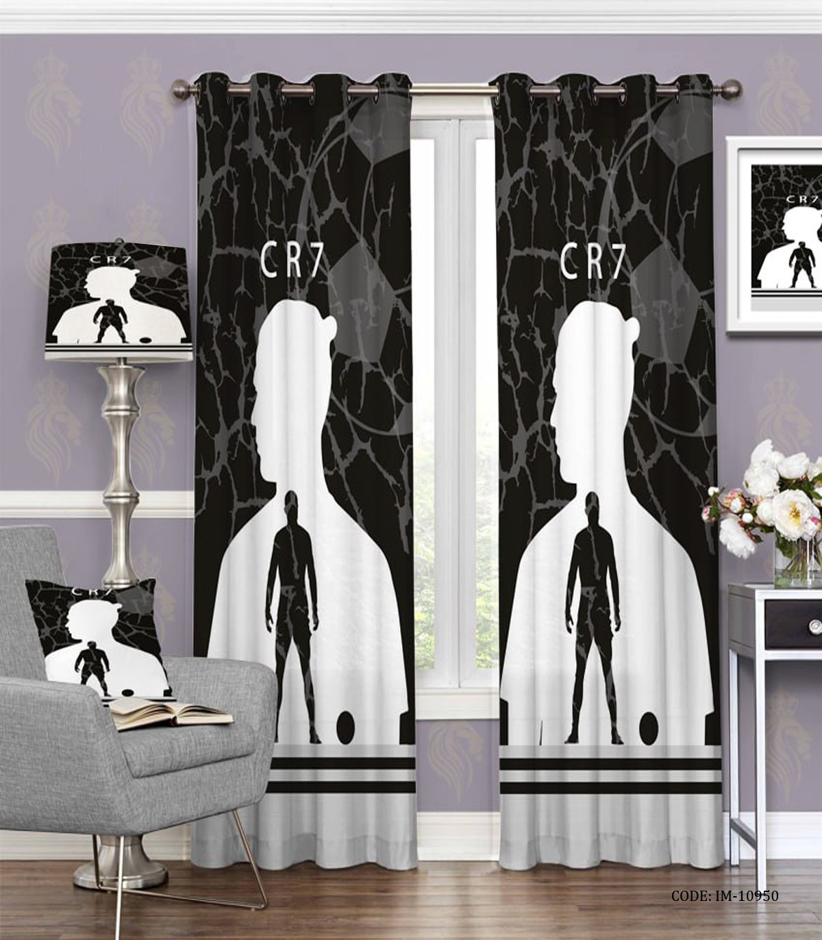 پرده پانچی سفید مشکی طرح انتزاعی کریستیانو رونالدو