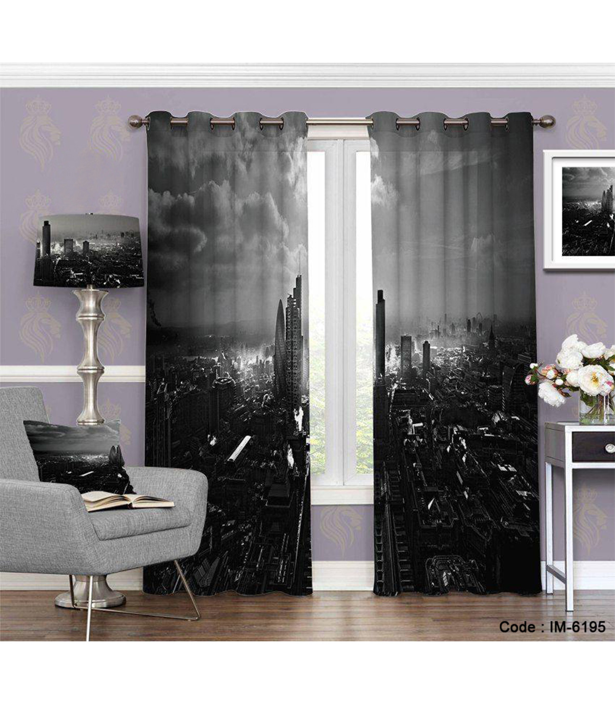 پرده پانچی سیاه و سفید طرح شهر در شب
