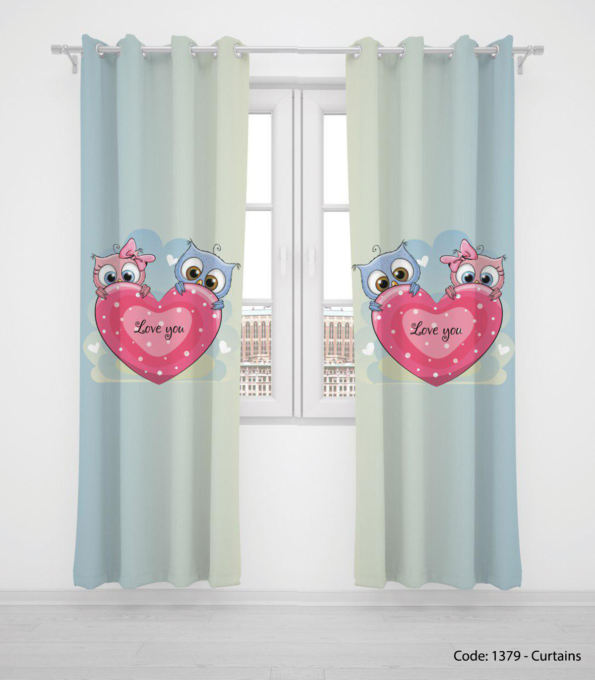 پرده پانچی قلبی دخترانه مدل LOVE YOU