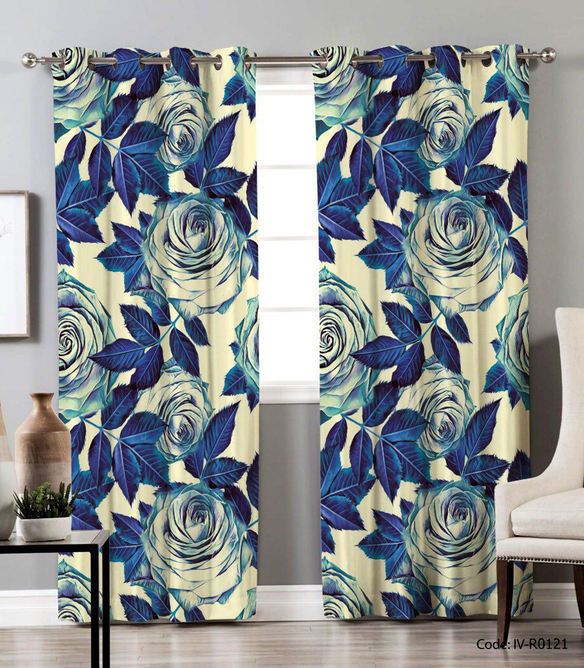 پرده پانچی مدرن دو تکه مدل رز آبی