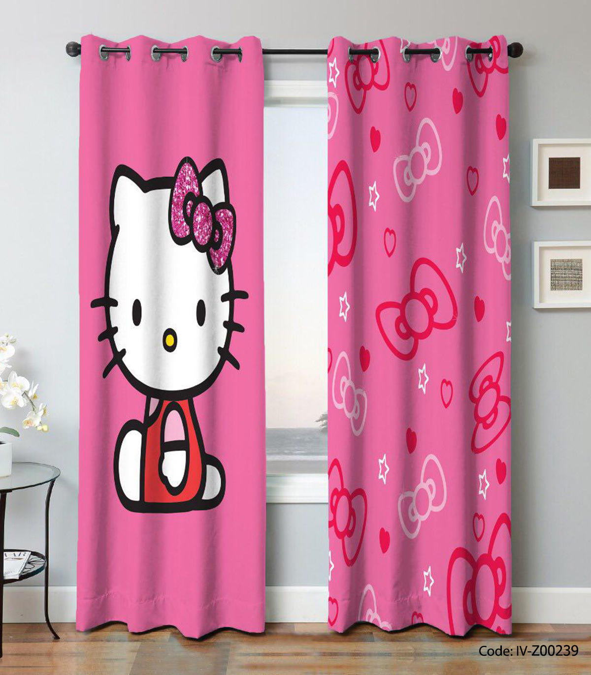 پرده پانچ اتاق کودک دو تکه مدل کیتی