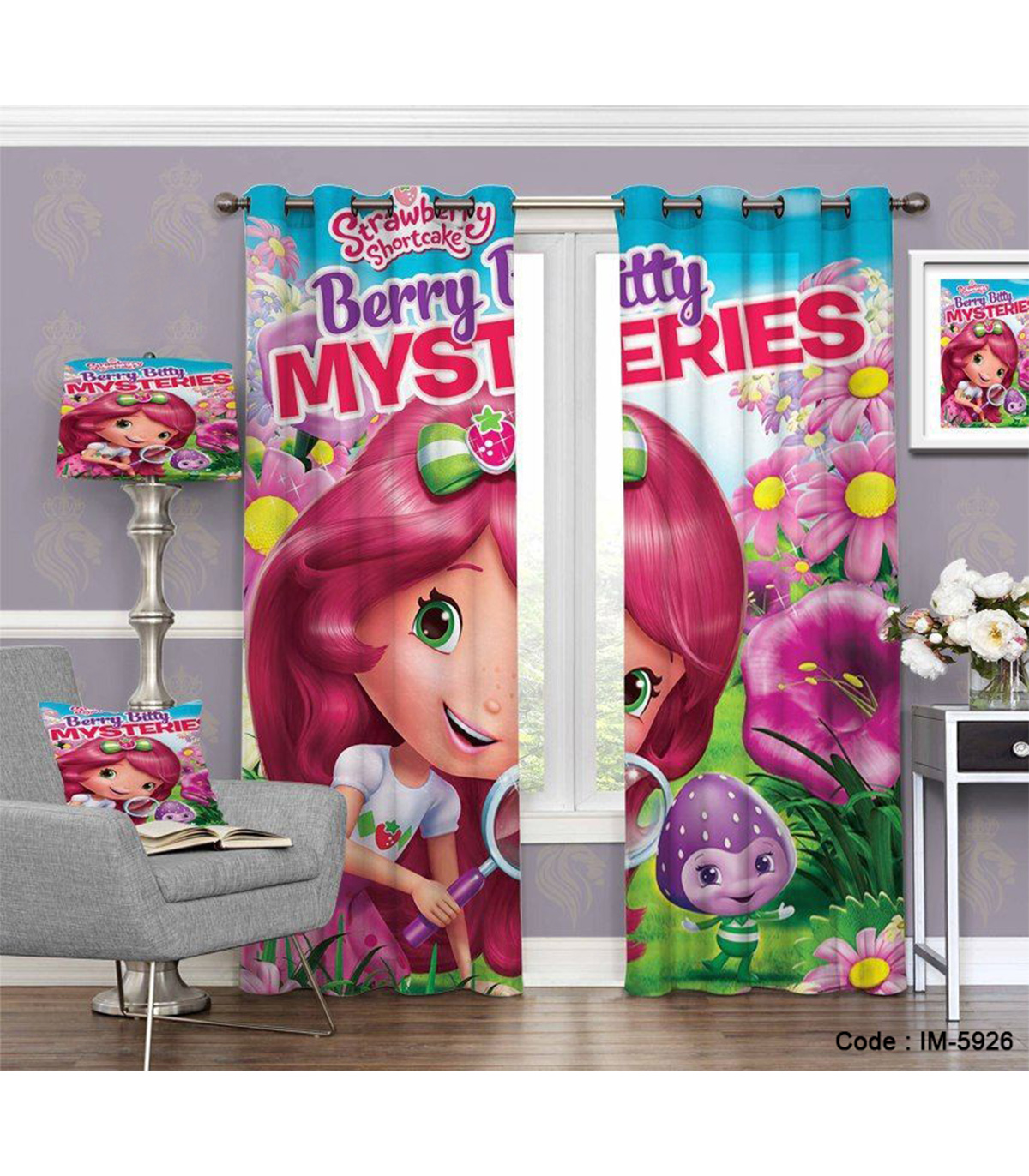 پرده کارتونی اتاق کودک دختر طرح دختر توت فرنگی