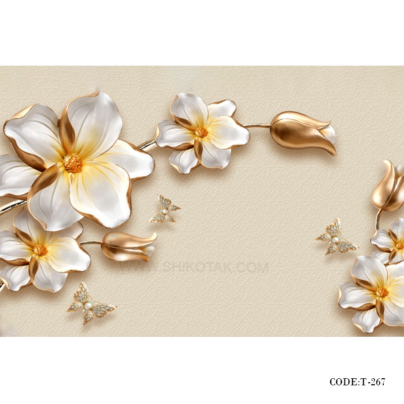 پوستر دیواری پارچه ای سه بعدی طرح لاله طلا