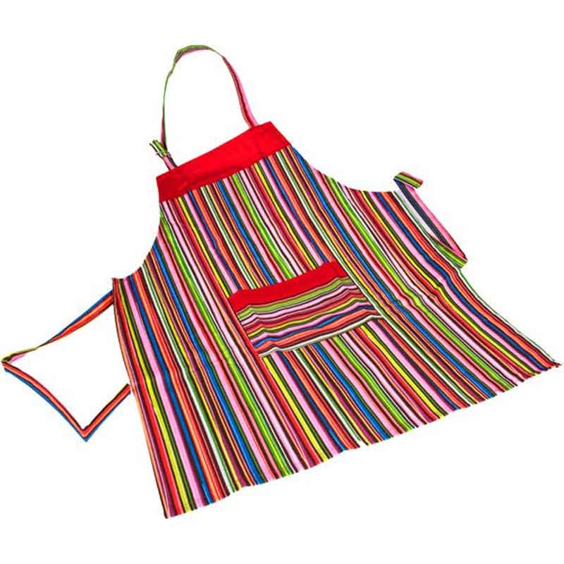 پیش بند آشپزخانه طرح راه راه الوان محصول شرکت رزین تاژ است . این پیش بند قابل ست کردن با سایر وسایل پارجه ای آشپزخانه نیز می باشد . استفاده از رنگ های سبز ، زرد و صورتی آن را برای دکوراسیون های با رنگ روشن مناسب می سازد و می توانید با هر یک از این سه رنگ ست زیبایی داشته باشید .