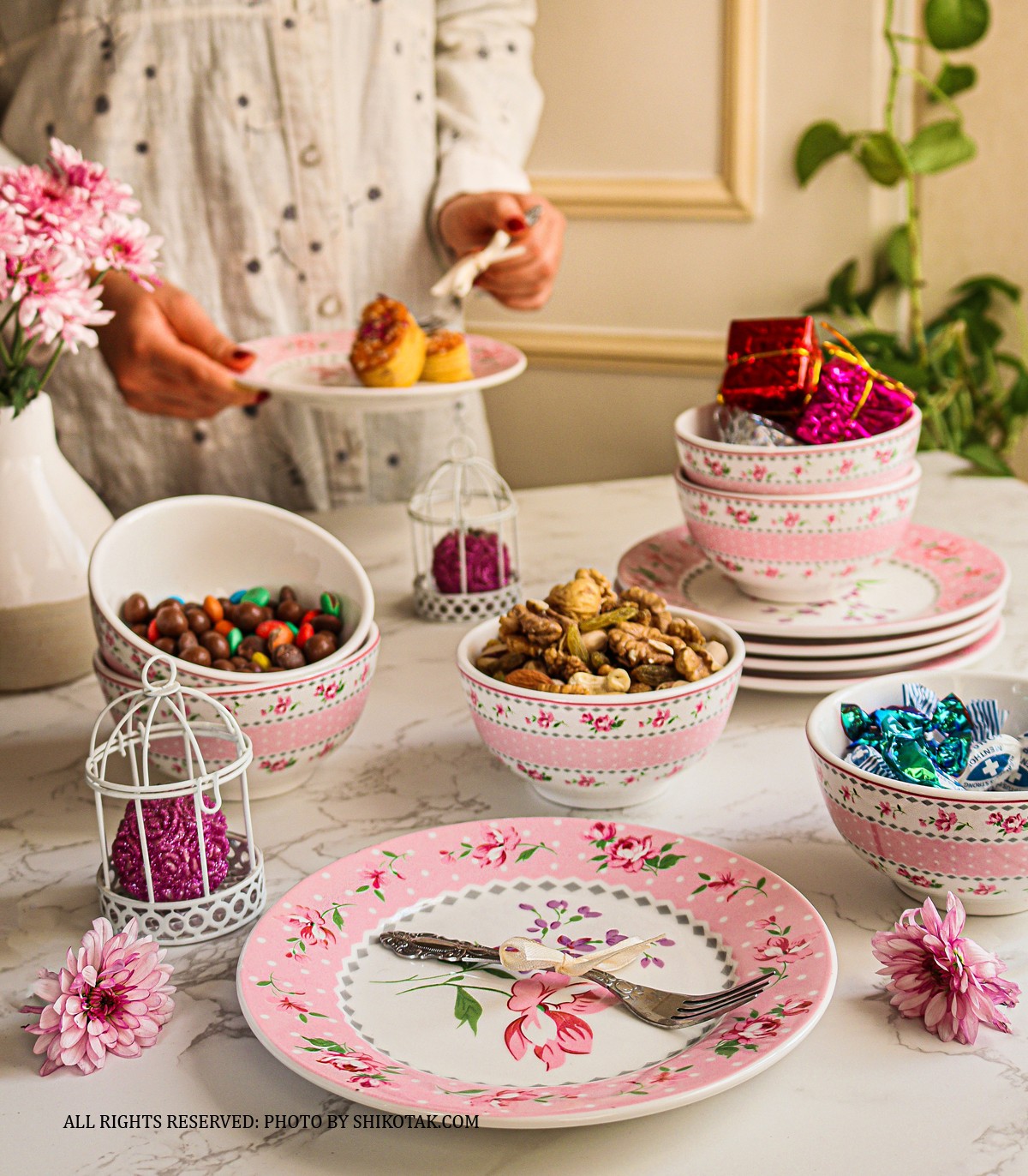 کاسه شش تایی آجیل خوری صورتی مدل آنجلا