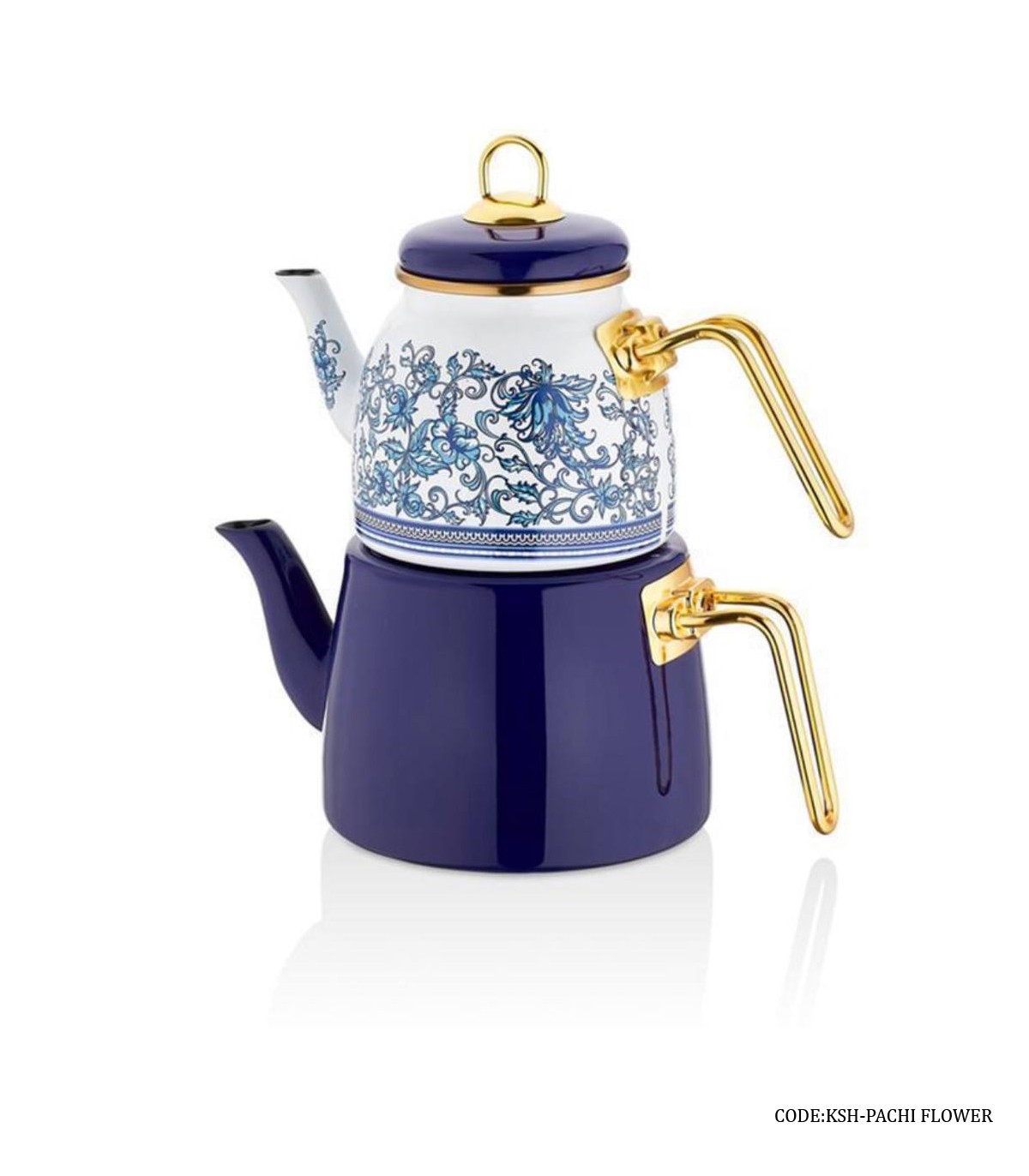 کتری و قوری دسته فلزی مدل PACHI FLOWER بنفش