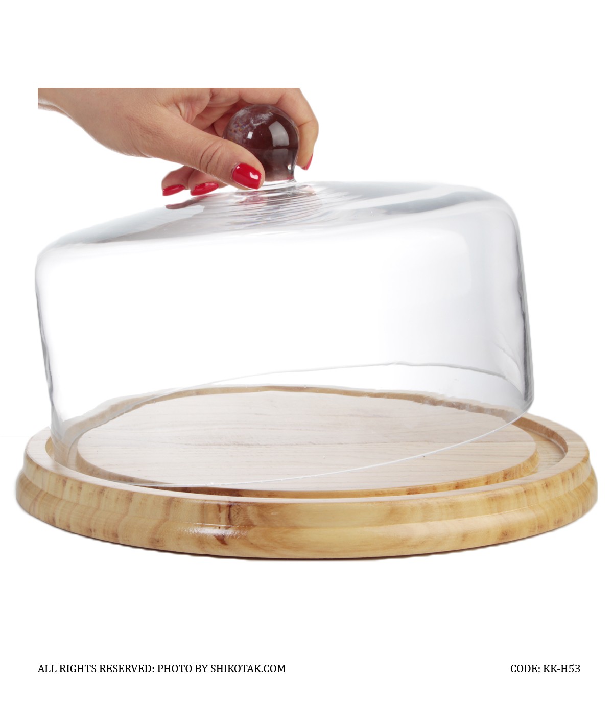 کیک خوری چوبی بامبو با درب شیشه ای مدل H53