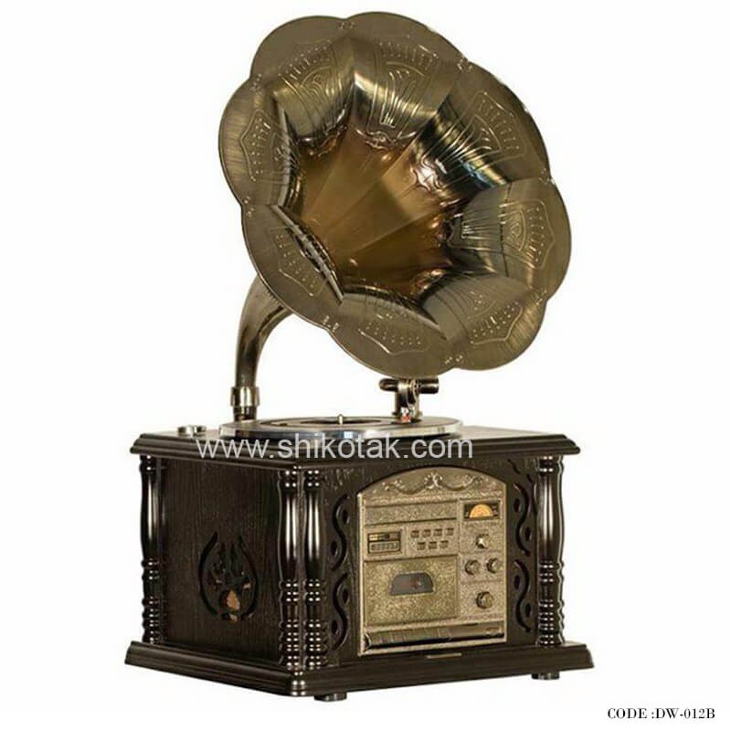 گرامافون رومیزی مدل آرتام شیپور بزرگ قهوه ای تیره