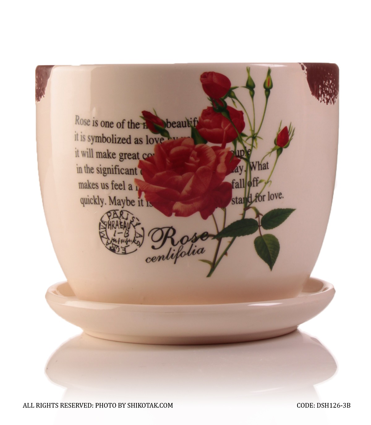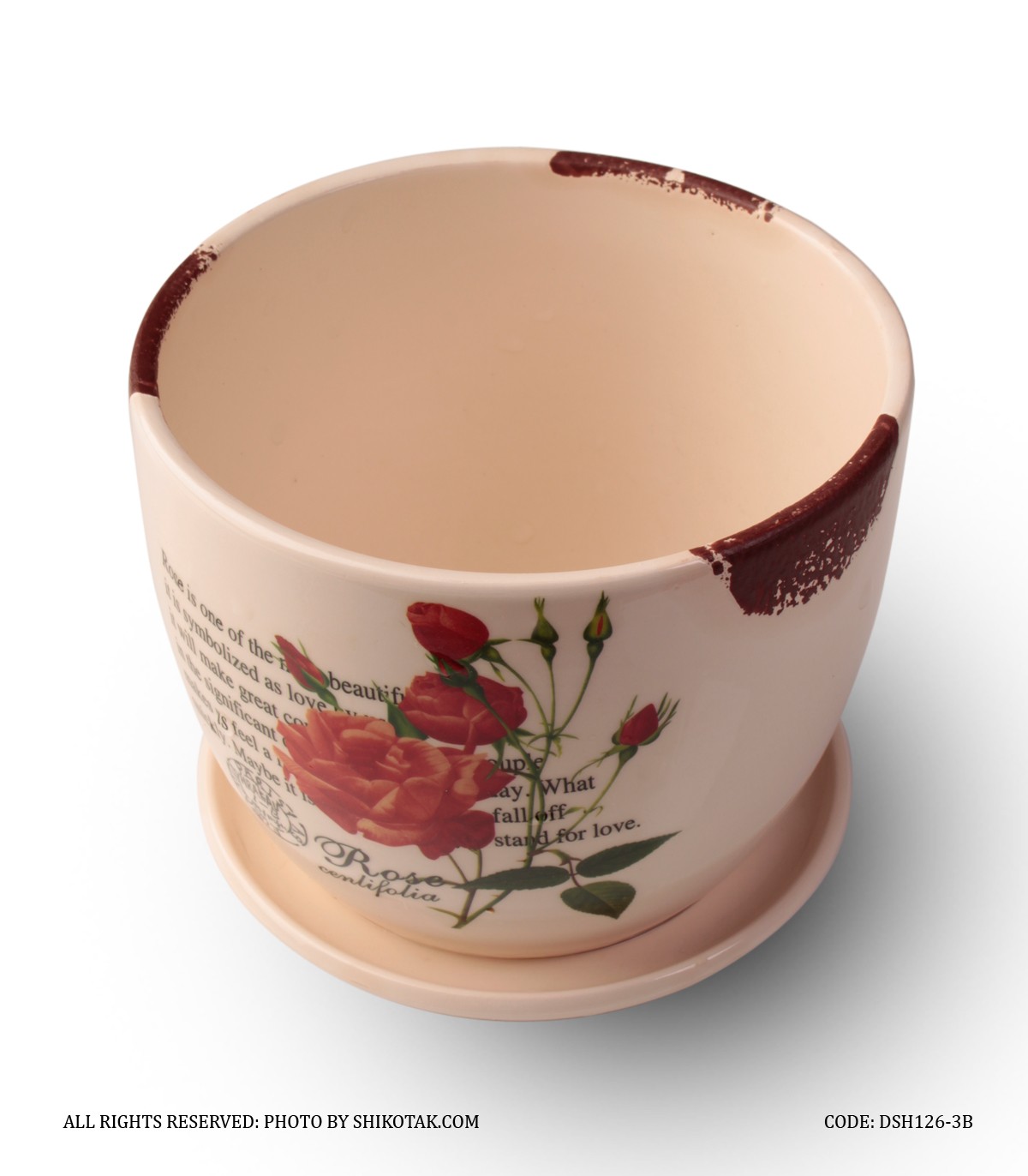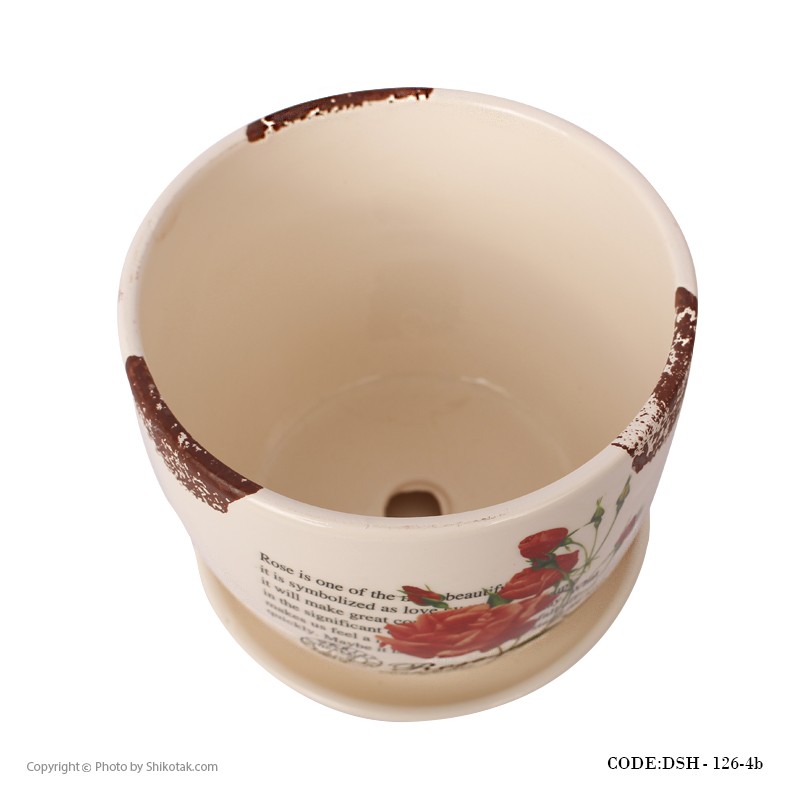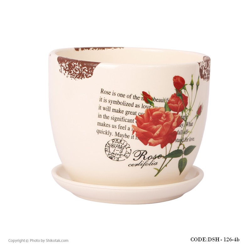 گلدان سرامیکی مدل گل سرخ لبه طرح دار
