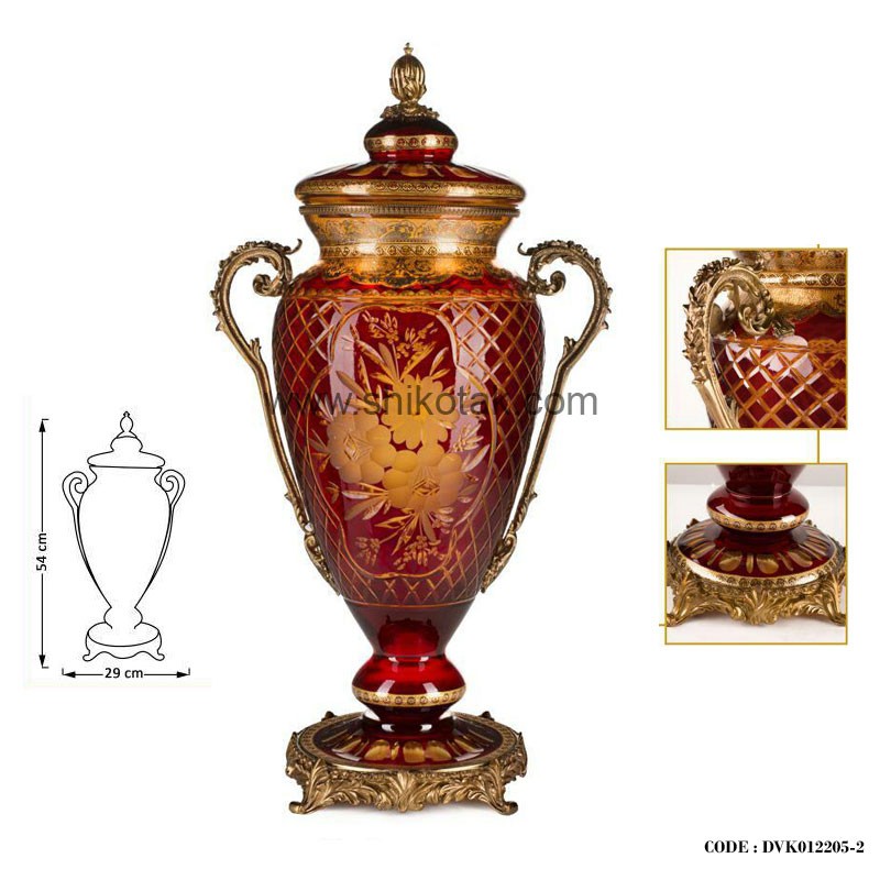 گلدان سلطنتی مدل کوزه ای بلند قرمز طلایی سری۰۴۵