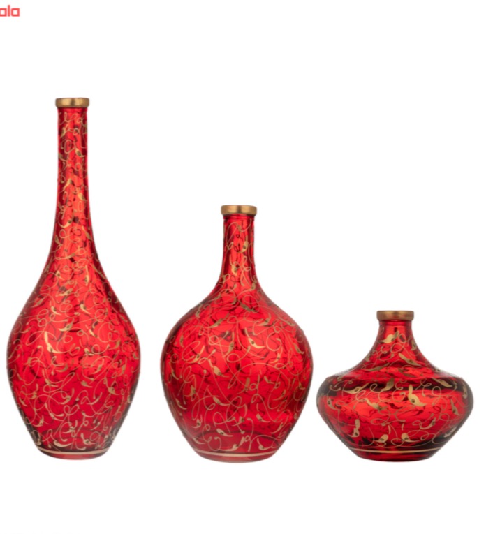 گلدان سه عددی سالونگ قرمزبا طرح های طلایی