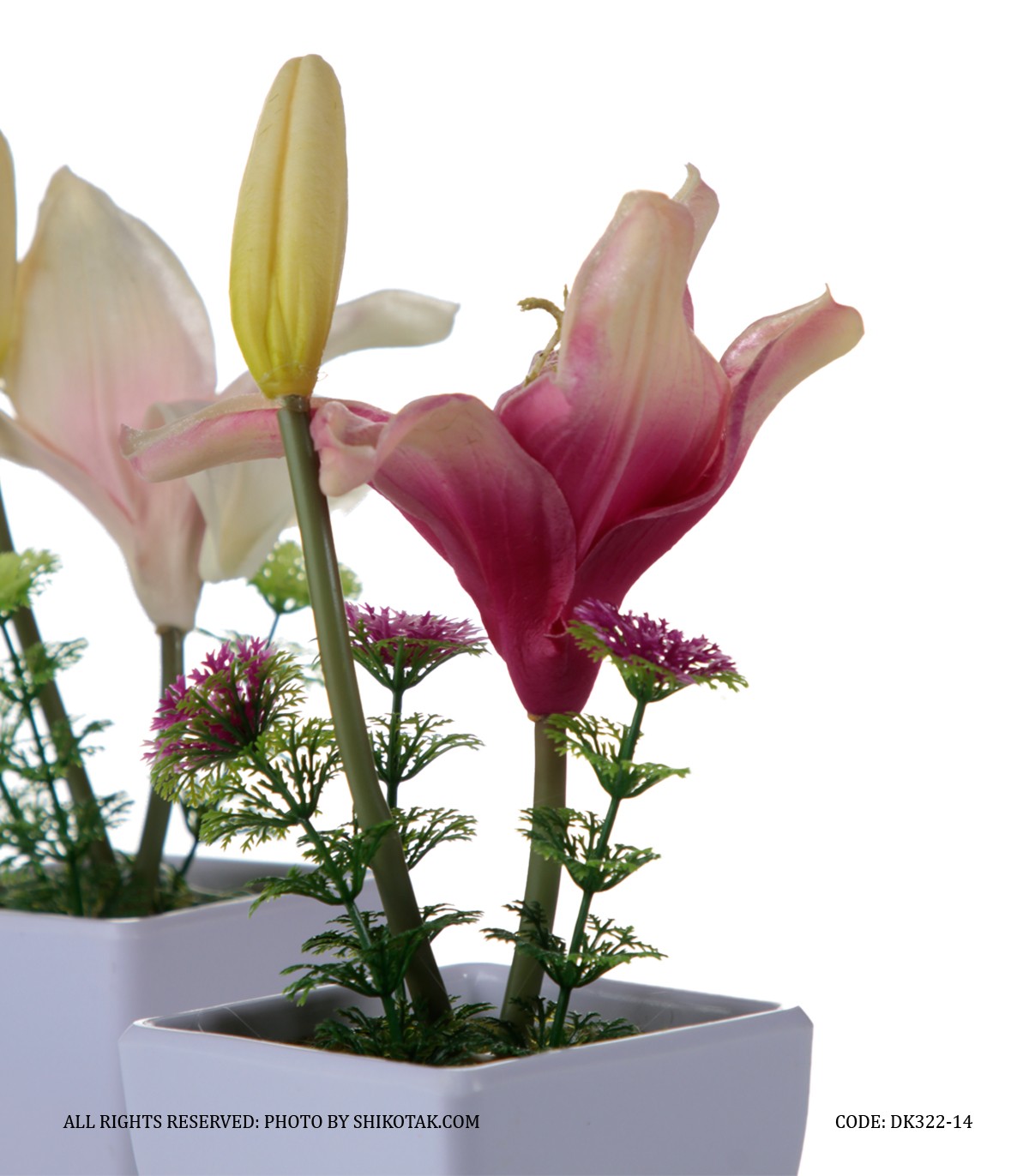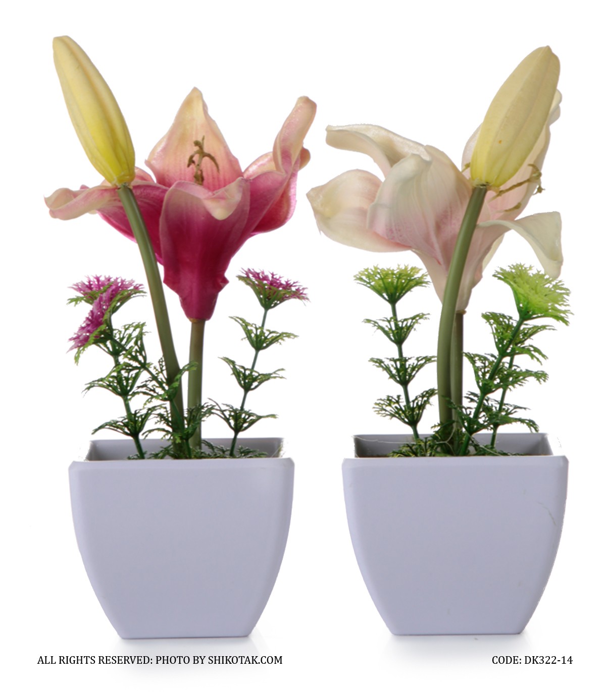 برخی از گل های مصنوعی به صورت شاخه ای و برخی نیز به صورت گلدان موجود هستند . گل لیلیوم مصنوعی به هر دو صورت در فروشگاه شیک و تک عرضه شده است .