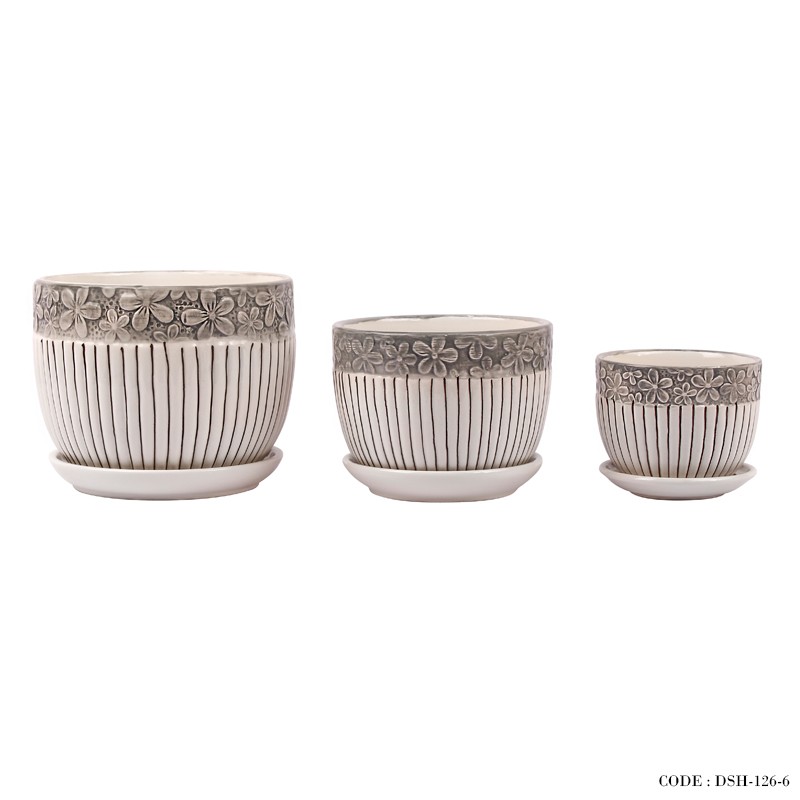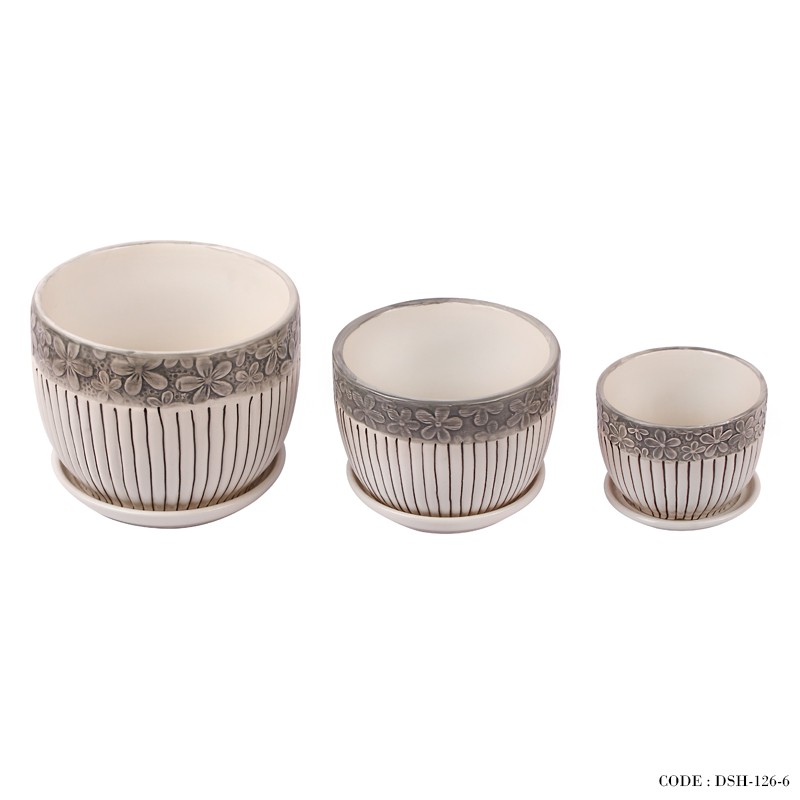 گلدان و زیرگلدانی سرامیکی سه سایز طرح راه راه