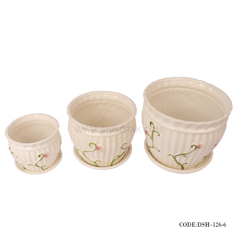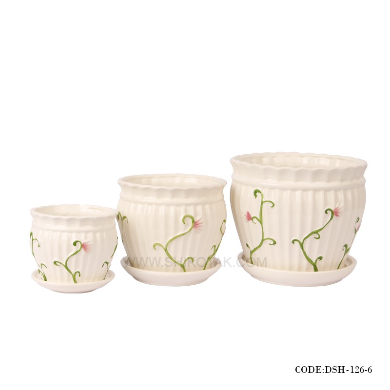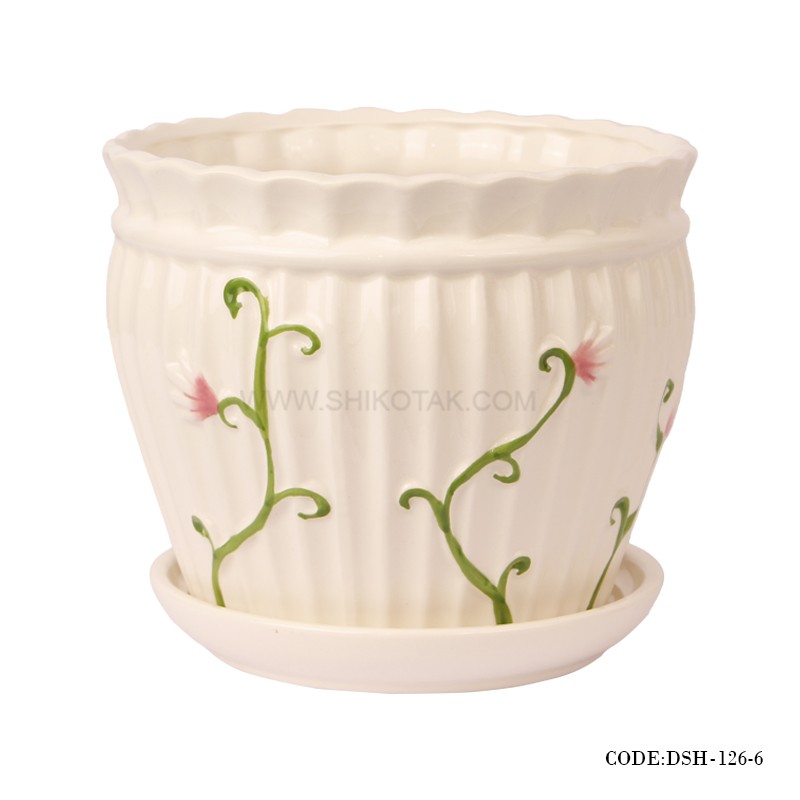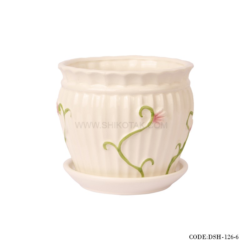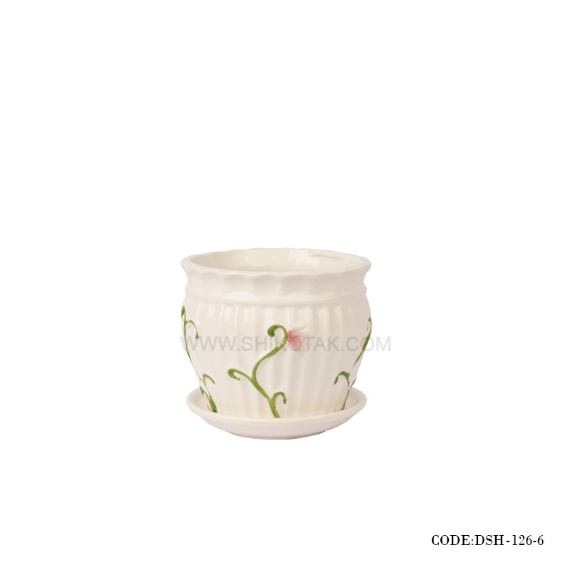 گلدان و زیرگلدانی سرامیکی طرح پیچک
