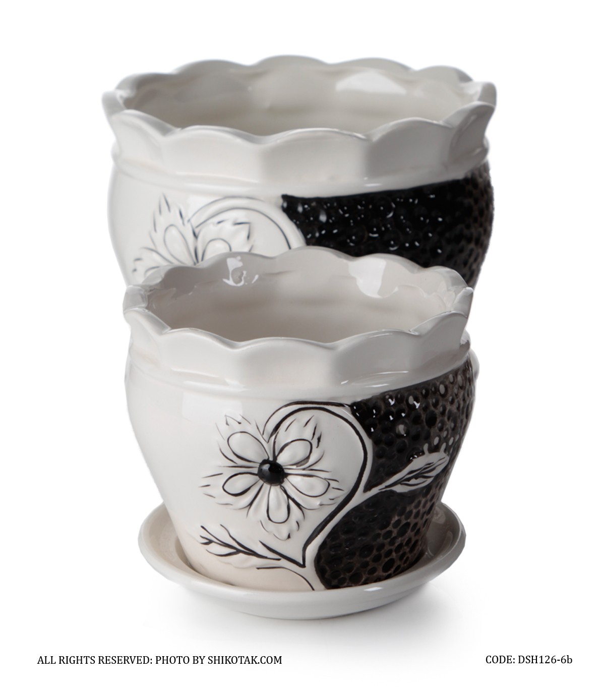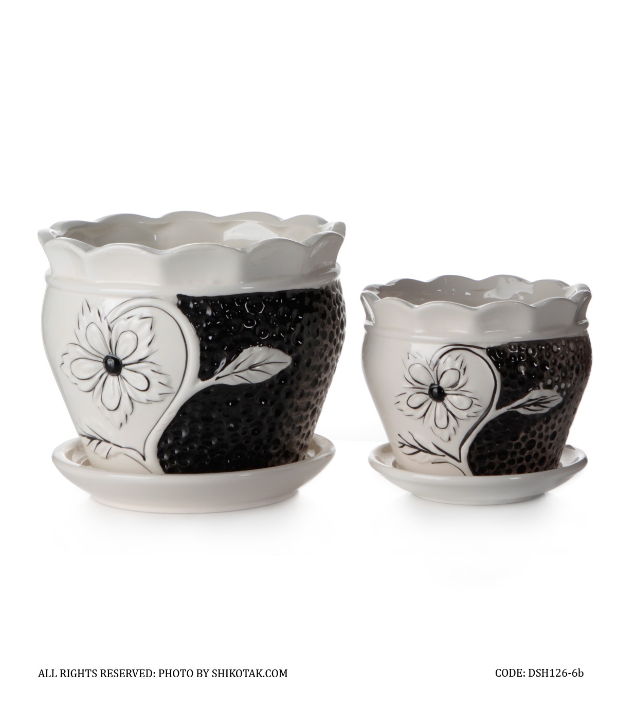 ست دو عددی گلدان و زیرگلدانی سرامیکی طرح گل مشکی
