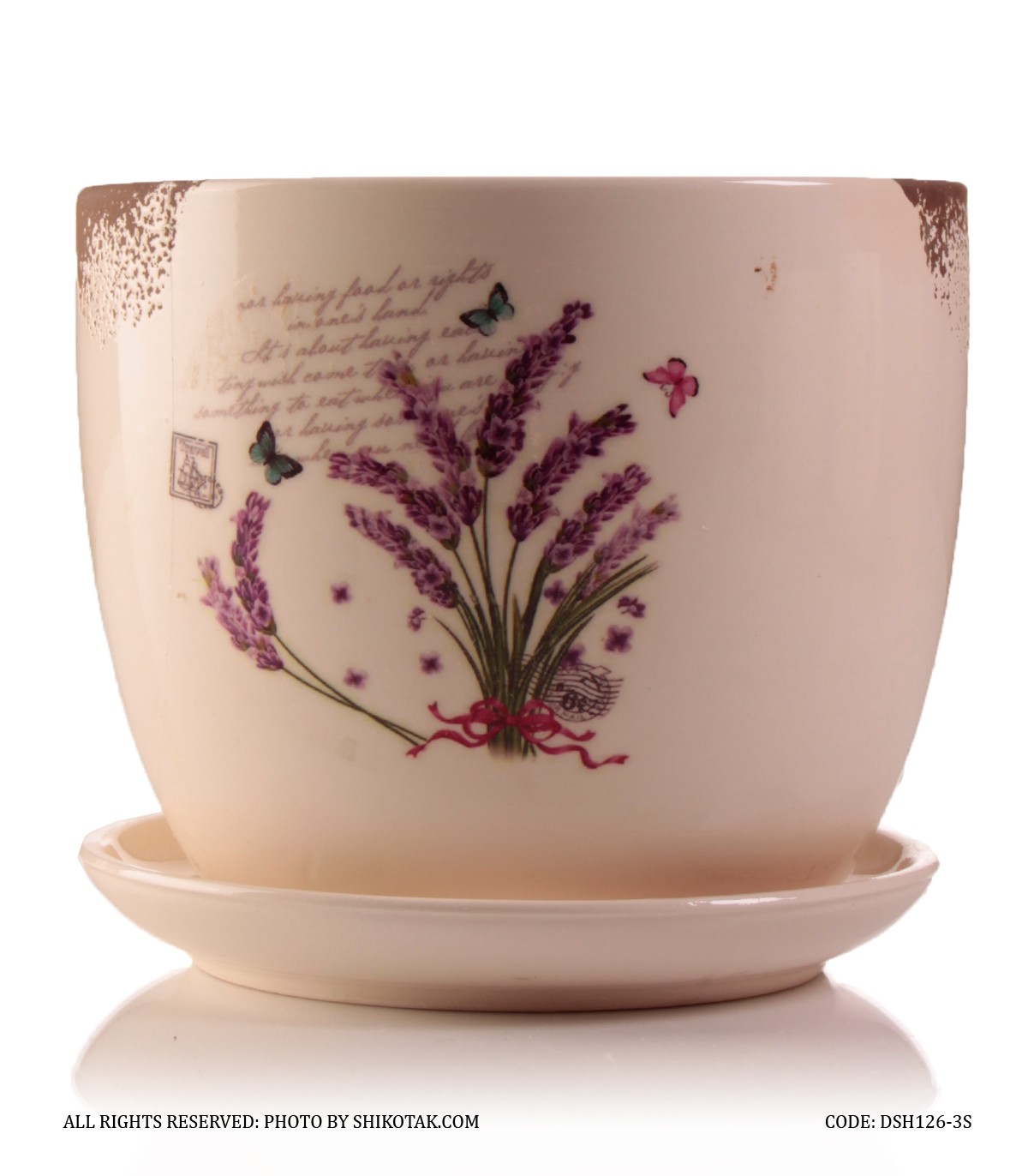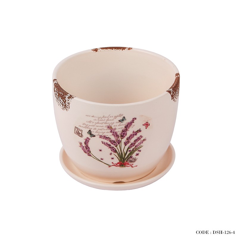 گلدان و زیر گلدانی سرامیکی طرح دسته گل