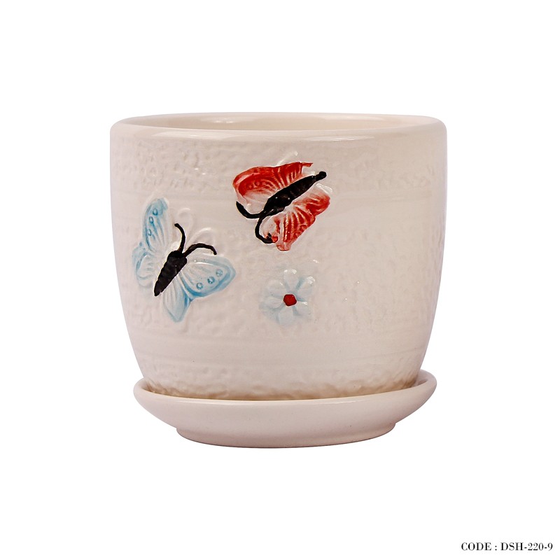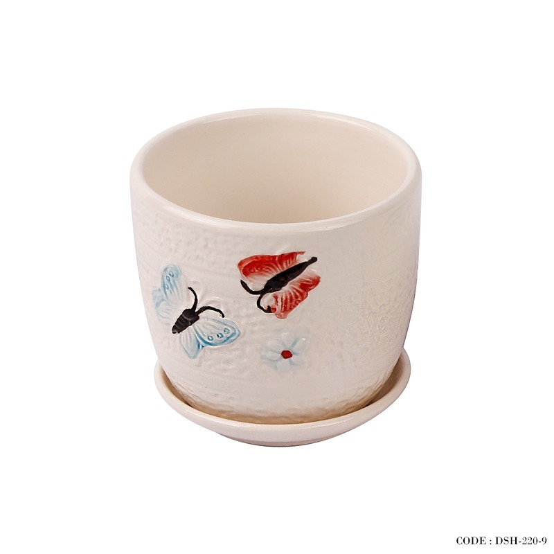 گلدان و زیر گلدانی سرامیکی طرح پروانه