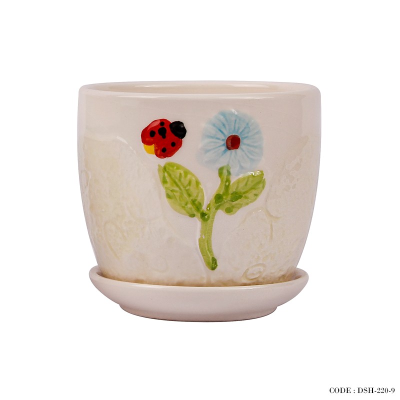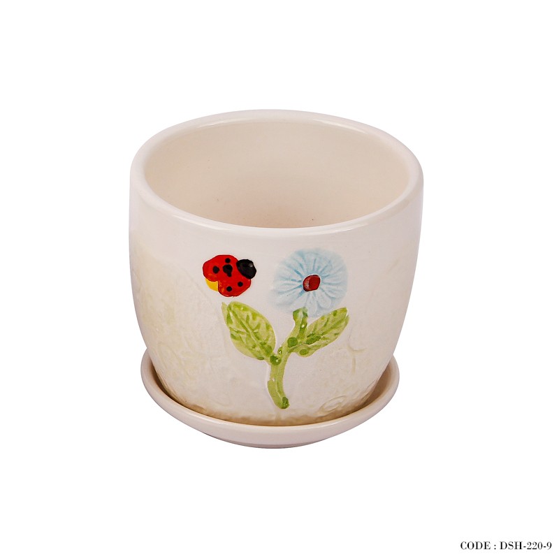 گلدان و زیر گلدانی سرامیکی طرح کفشدوزک