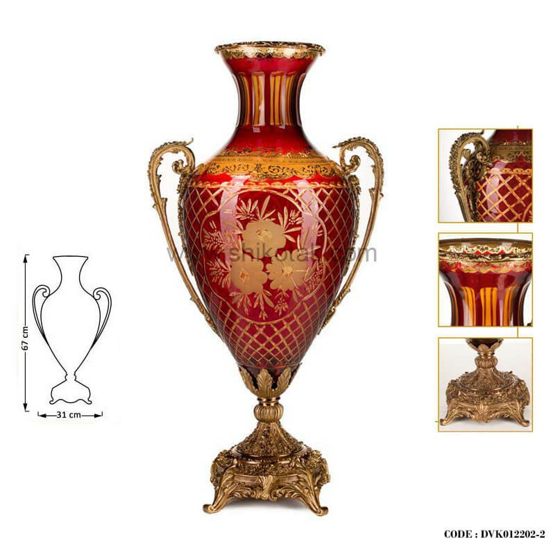 گلدان پایه برنز بلند قرمز طلایی سری ۰۱۲